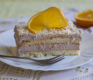 This dessert is inspired by tiramisu, but is very different in appearance and taste. It comes very creamy, fresh and moist, as the biscuits are soaked in orange juice. The flavors combine great if the dessert rests for a long time, so it’s best if you prepare it a day before consumption.